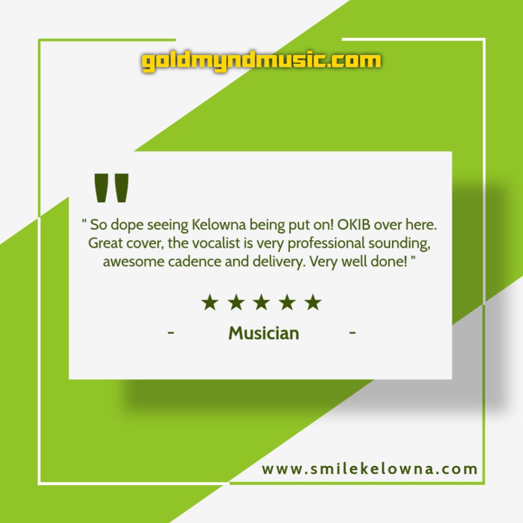 Smile Kelowna is a high-spirited reggae anthem that celebrates the beauty, community, and positive spirit of Kelowna. Smile Kelowna celebrates the vibrant spirit of our community through music and culture, uniting people from all walks of life under the uplifting rhythms of reggae. By showcasing the beauty of Kelowna and the talent of its artists, our mission is to inspire positivity, connection, and pride in our city while fostering inclusivity and cultural appreciation. Gold Mynd continues to establish himself as the Reggae Ambassador for the region.
